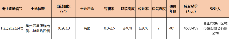 徽州区1宗45.39亩商服用地成功出让