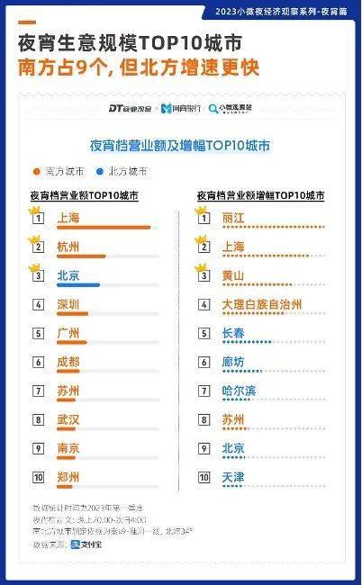 夜宵经济,正是夜经济的“黄金时段”。夜宵档是指晚上20:00-凌晨4:00的时间段,据小微观察站显示,今年营业至夜宵档的商家数量同比增长15%,平均营业时间延长1成,涨势迅速。夜宵经济的增长,旅游是一大驱动力。今年营业时间延长最多的10个城市,80%都是旅游城市,很多还不是“老网红”。旅游热,带动了夜宵热,来自城市的游客把吃夜宵的习惯带到大江南北,也带动了当地餐饮经济的发展。