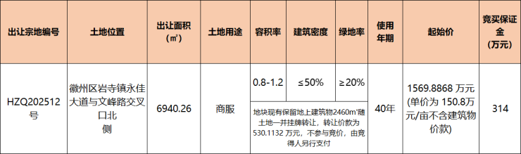 徽州区1宗商服用地挂牌