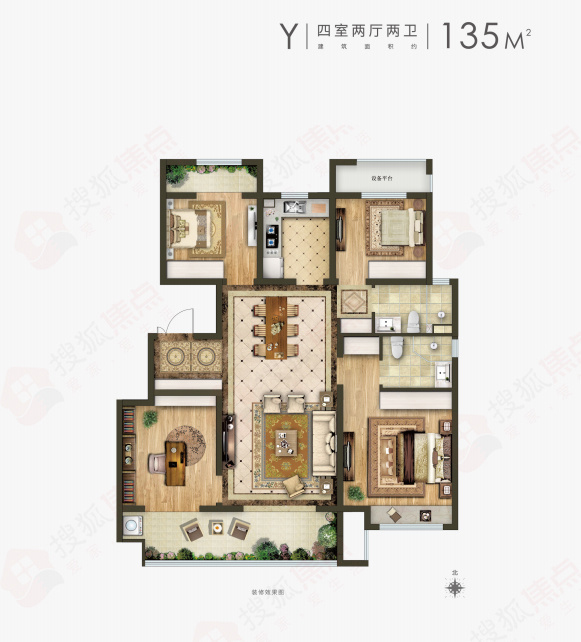 ⑥建筑面积约135㎡Y2户型四室两厅两卫