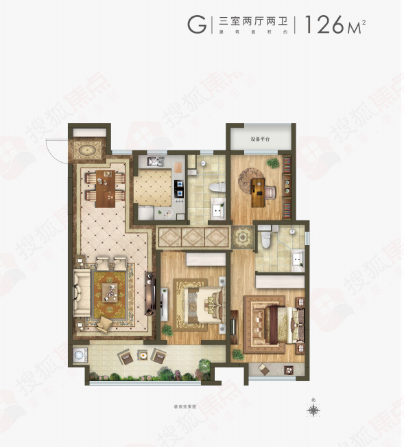 ③建筑面积约126㎡G3户型三室两厅两卫
