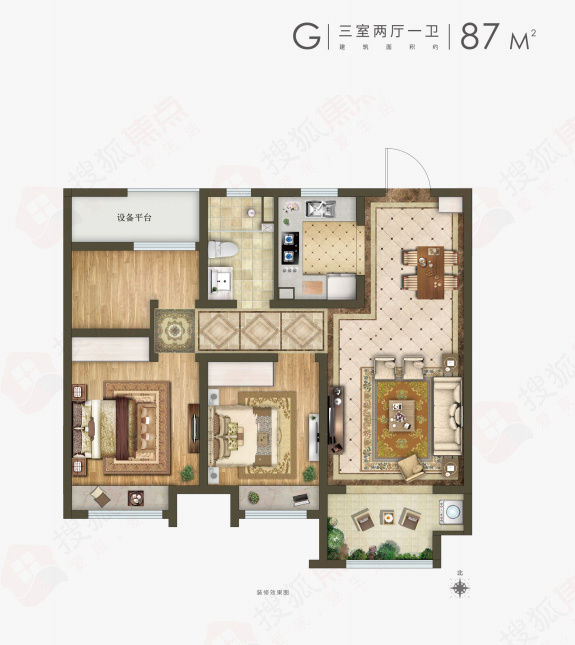 ①建筑面积约87㎡G1户型三室两厅一卫