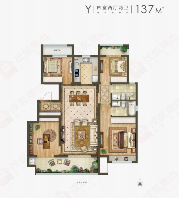 ⑦建筑面积约137㎡Y3户型四室两厅两卫