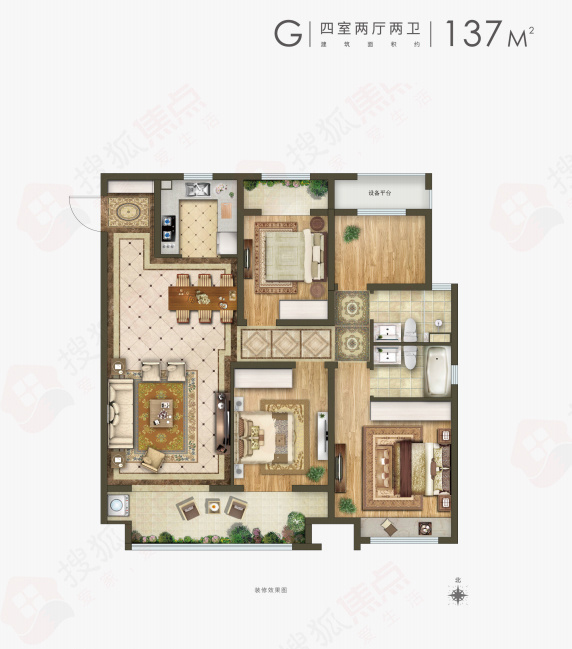 ④建筑面积约137㎡G4户型四室两厅两卫