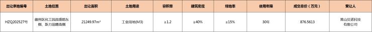 徽州区1宗工业用地成功出让