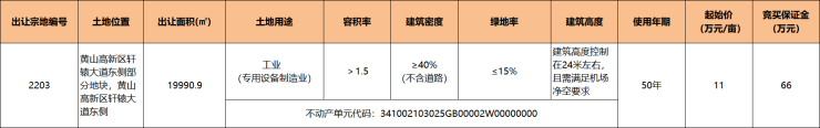 黄山高新区1宗工业用地挂牌,出让面积19990.9㎡