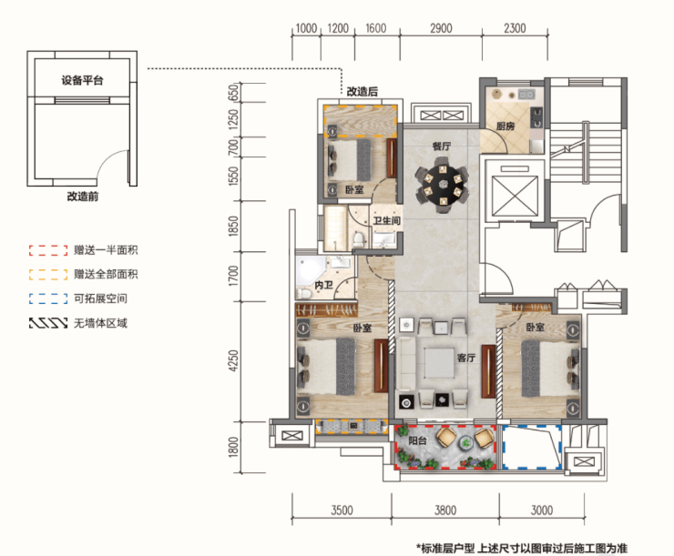 一体化阔绰餐客厅无分界宽境,超6m宽绰观景阳台,盛纳四季更迭的每一幕;270度景观视野,演绎宽境舒居格局。