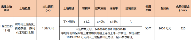 徽州区1宗工业用地挂牌出让