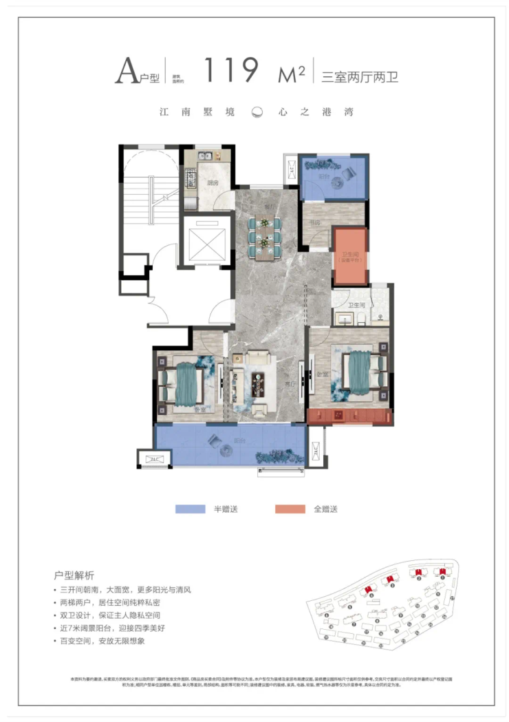 鸿基金港湾,是鸿基地产深耕黄山26载的品质升级之作,总建面约13万方,主要产品有排屋、多层洋房、景观高层等住宅673户,商业配套约1400㎡,涵盖多种业态,满足各种置业需求。在户型设计方面,始终坚持以舒适人居为导向,多处可拓展空间让户型灵活机动,自由百变。南向开间宽境阳台能够较大限度确保引入外部园林景观,同时延伸内部动线,满足丰富的居住生活需求。