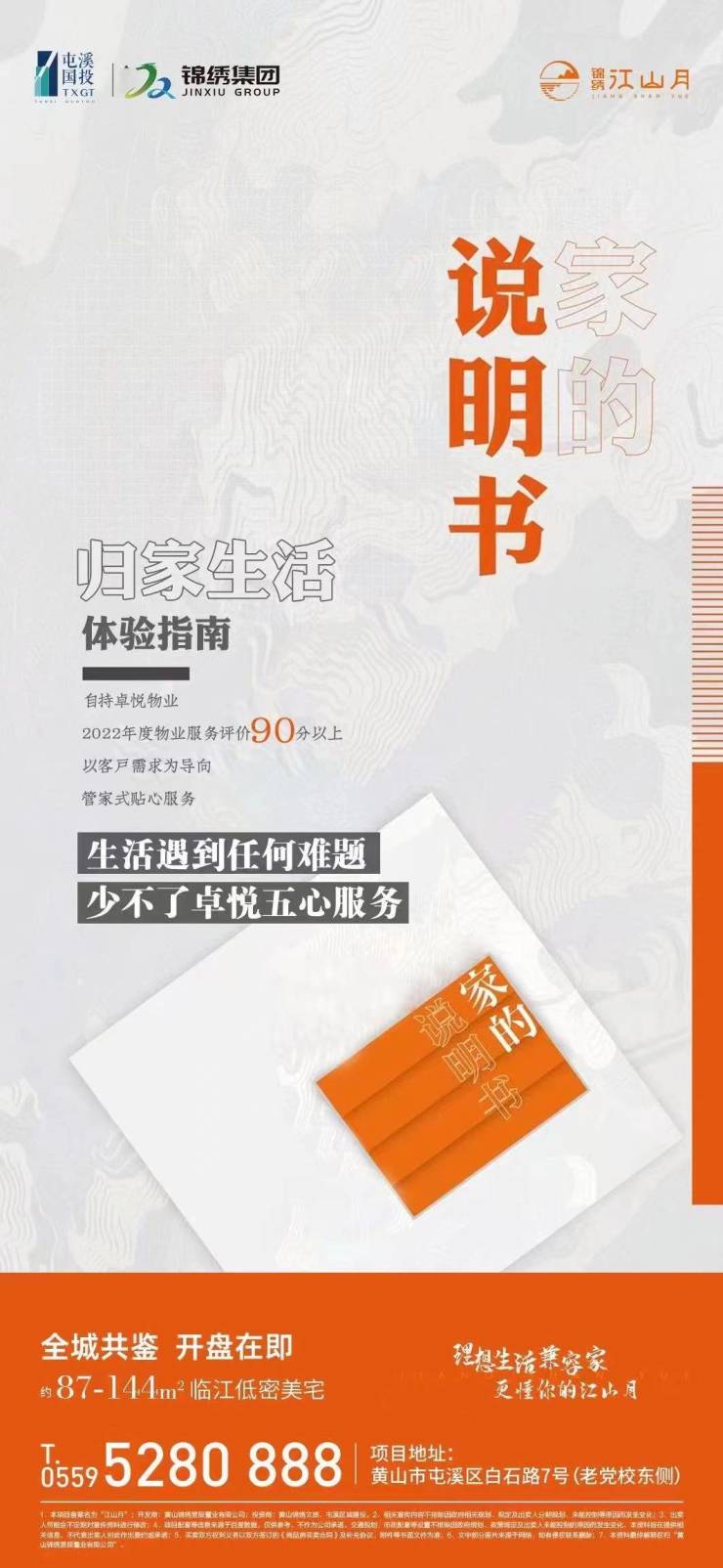锦绣江山月,家的说明书使用指南暖心上线,建面约88-144㎡临江低密美宅,悦启美好生活!全城共鉴,开盘在即。