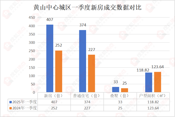 1. 成交量显著增长:2025年一季度新房成交套数达407套,同比上涨61.5%,市场回暖迹象明显。其中普通住宅成交374套,叠墅成交33套。普通住宅成交户型面积为118.82㎡,较2024年同期的123.64㎡略有缩减,购房者对购买总价更加敏感,说明市场需求正在向面积更为适中的产品靠拢。