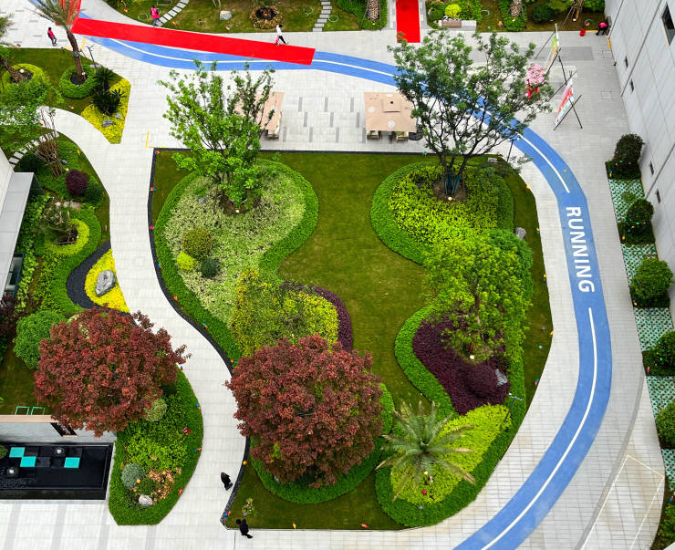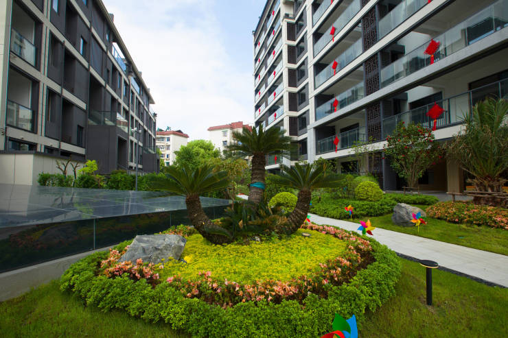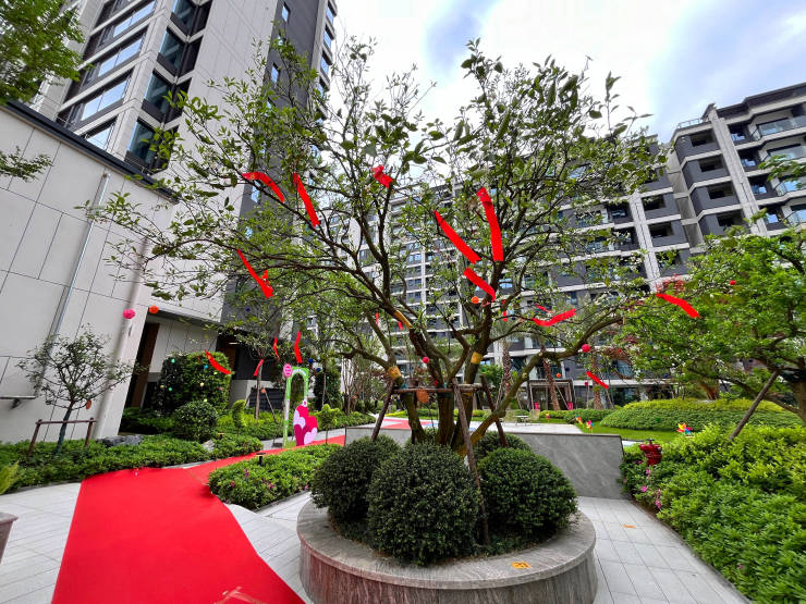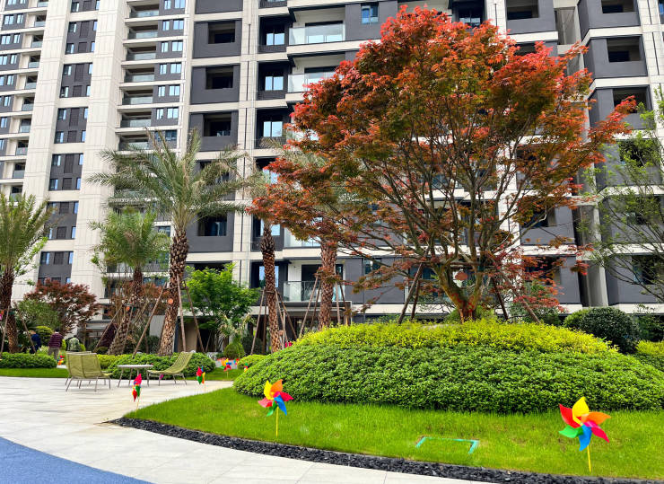 江南宸府在景观设计上追求观赏性与功能性的有机结合,用景观园林为社区注入了绿意盎然的生命力,营造出自然与生活和谐交融的社区氛围。园区内不仅拥有胡柚、石榴、罗汉松、红枫、紫薇、中东海枣等众多名贵树种,并搭配高密度绿植花卉和水系,赋予景观艺术气息。过程中,造园团队更亲赴多个地区,参观学习,并精心甄选景观、树种等,只为更好匹配土地的价值,打造高品质的园林景观。