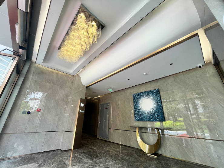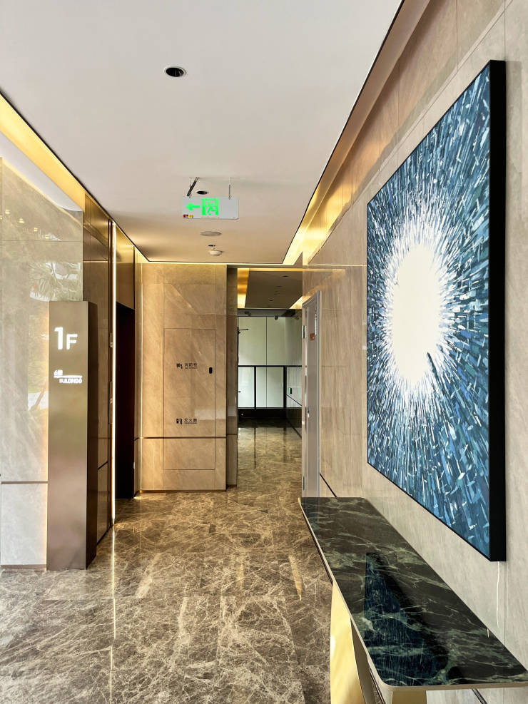 此外,社区内采用双精装入户大堂设计,地面、地库空间皆做到了酒店式精装入户,搭配铝板、仪式感壁灯与发光金属立体字LOGO标识,满满的归家仪式感。