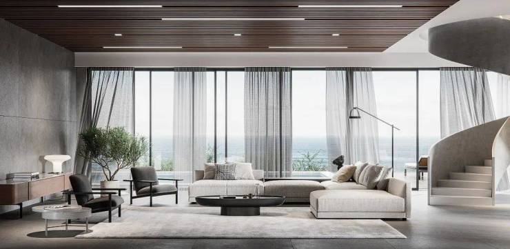 更运用现代化的建筑语言与精湛工艺,整体线条简洁明快,大气简约。采用了大面积的落地玻璃设计,窗墙比超高,带来宽窗宽视野的居住体验,将更多阳光与清风引入室内,让居家时光诗意自在。
