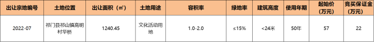 祁门县1宗文化活动用地挂牌,出让面积1240.45㎡
