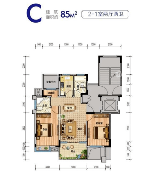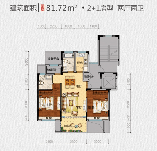 首先面积上更大,空间更舒适;其次双卫设计,家庭生活更加从容,不必排队用一个卫生间;再次三开间朝南,南北通透,空气对流,阳光充裕,最后由于面积不大,总价较低,对于刚需家庭来说,不仅能在市中芯置业,经济方面也更加轻松。
