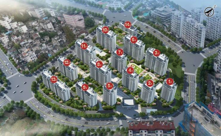 从项目整体规划来看,锦绣江山月总建筑面积超9万㎡,由14栋11-14层高的住宅组成。