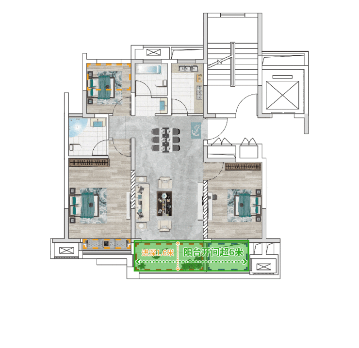 一般而言,由于面积较小,其他项目会舍弃很多设计,如一般刚需小户型,阳台常见约1.3米,一些改善点的户型能做到1.5米宽,而江山月不仅进深约有1.6米,开间到了超过6米(改造后),而市面上其他项目即使宽度能做出超1.5米,但是牺牲了开间宽度。