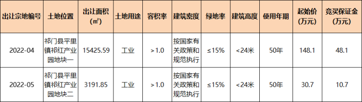 祁门县2宗工业用地挂牌,出让面积合计18617.44㎡