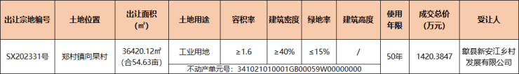 歙县1宗工业用地成交