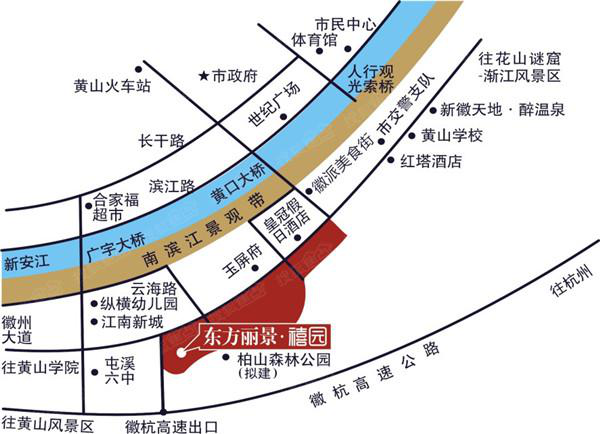 屯溪六中、黄山学校、徽派美食一条街、黄山皇冠假日酒店、醉温泉等,完善配套资源,乐享高尚生活圈。