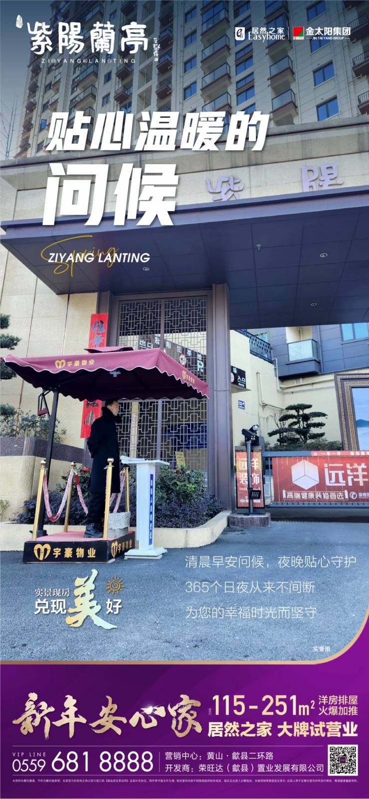 紫阳兰亭,实力房企品牌物业,清晨早安问候,夜晚贴心守护,365个日夜从来不间断,为业主的幸福时光而坚守!紫阳兰亭,实景现房,建面约115-251㎡洋房排屋火爆热销,即买即享,幸福无需等待。紫阳兰亭由深耕黄山的…