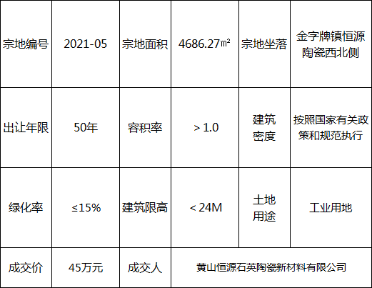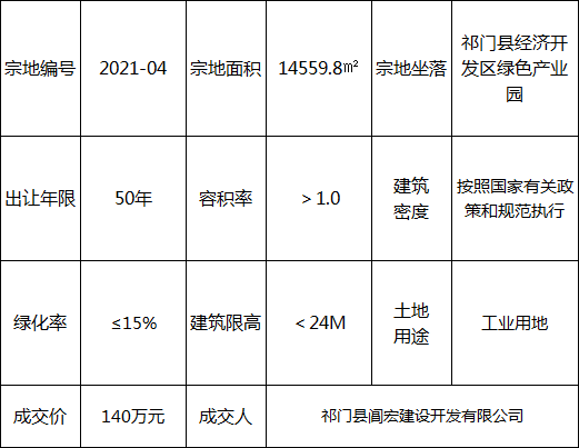 现将祁门县国有建设用地使用权挂牌出让成交结果公示如下:
