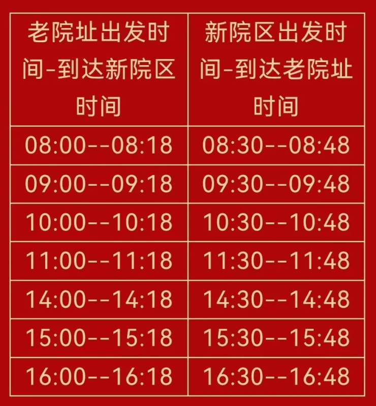 2.新院区和老院址之间班车时间表(2024年2月26日后停止运行)
