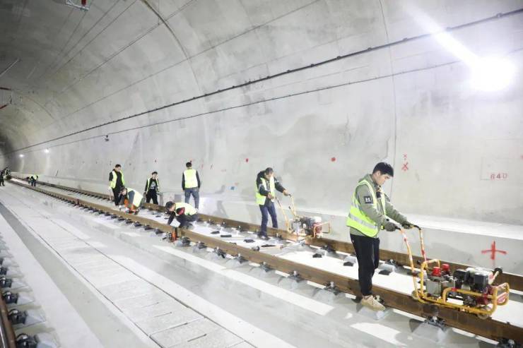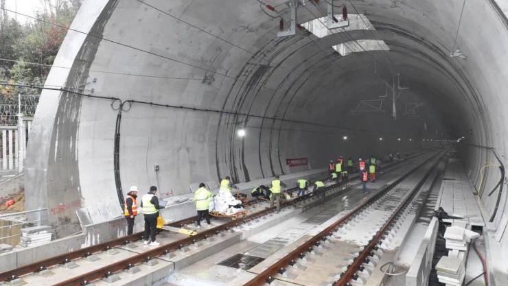 12月15日,在池州市贵池区马衙街道灵芝村金鸡岭2号隧道施工现场,随着作业人员使用精调设备对轨道进行分段精细化调整作业,标志着新建池州至黄山高速铁路(以下简称池黄高铁)建设进入轨道精调阶段,为后续联调联试和开通运营打下了坚实的基础。