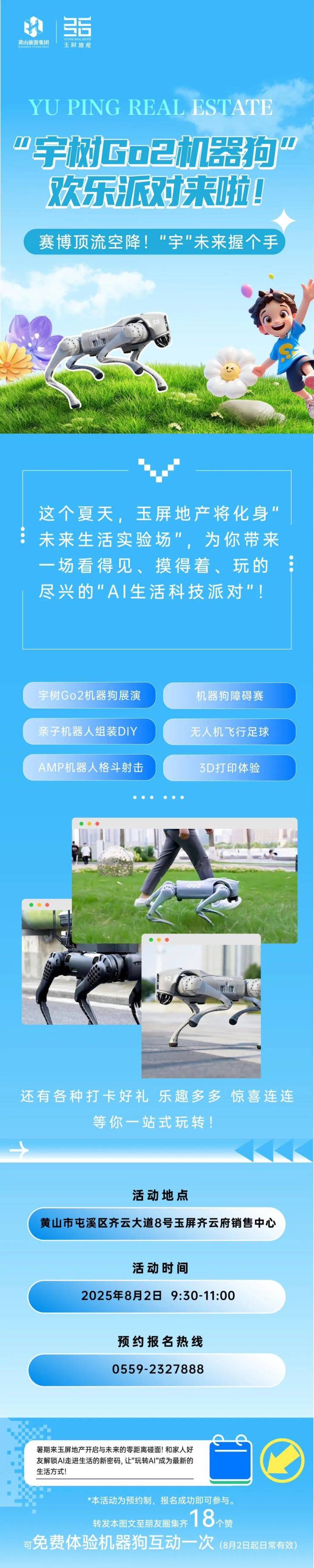 玉屏地产|机器狗欢乐派对来啦!8月2日 来玉屏齐云府“宇”未来握个手