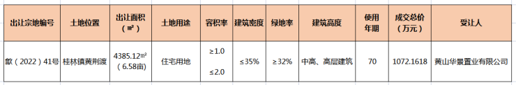 歙县1宗6.58亩住宅用地成交!