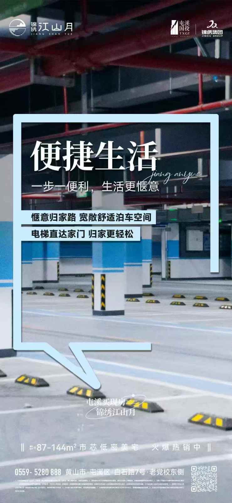 一步一便利,生活更惬意。锦绣江山月,惬意归家路,宽敞舒适泊车空间,电梯直达家门,归家更轻松。