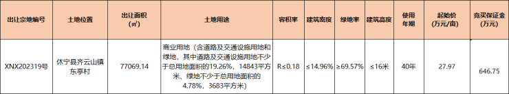 休宁1宗116.5亩商业用地挂牌