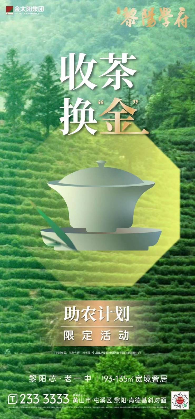 黎阳学府限定活动:助农计划收茶换“金”!【名额有限,先到先得,换完即止!具体活动详情请咨询黎阳学府营销中心】黎阳学府,黎阳芯·老一中,建面约93-135㎡宽境奢居热销中,压轴封藏,尊席加推,谁能入主最后的黎阳…